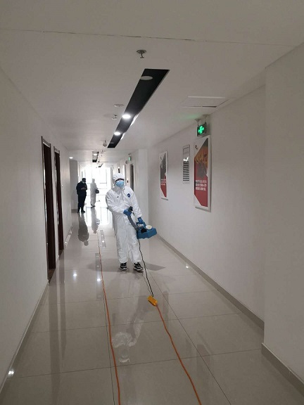 為進一步做好新型冠狀病毒感染的肺炎疫情防控工作,確保廣大職工身體健康,城發(fā)物業(yè)公司項目處邀請專業(yè)消殺隊伍采用無毒藥劑有效針對辦公樓內(nèi)食堂、電梯間、應(yīng)急通道、走廊、衛(wèi)生間等公共區(qū)域進行全面消毒,確保公共區(qū)域衛(wèi)生安全。
