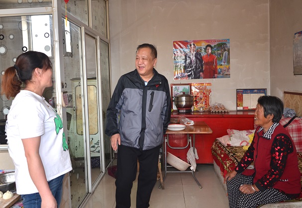 一下車,呂德育、吳利勤就走進了“一對一”包扶貧困戶翟金蓮老人家中,老人因患有腦梗,年歲又高,沒有勞動能力,導(dǎo)致家庭貧困。呂德育關(guān)切地詢問了老人近來的身體健康狀況,仔細地查看了家里的環(huán)境衛(wèi)生情況,并向老人送去了自己的慰問金。老人感激地指著習(xí)主席的畫像說:“共產(chǎn)黨好,習(xí)主席好,多謝你們領(lǐng)導(dǎo)干部關(guān)懷和照顧,吃不愁,穿不愁,居住環(huán)境也干凈了,病了也有村合作醫(yī)療。我們老人趕上了好時代,才過上了這樣幸福的生活。”在交談中,呂德育再三叮囑老人要保重自己的身體,囑咐村干部要多照顧老人,特別要注意老人的身體健康和居家環(huán)境衛(wèi)生,讓老人度過一個幸福、安詳?shù)耐砟辍堄?、云崗、武云、趙永強也分別走訪調(diào)研了“一對一”包扶貧困戶,征求了貧困戶的意見和建議。