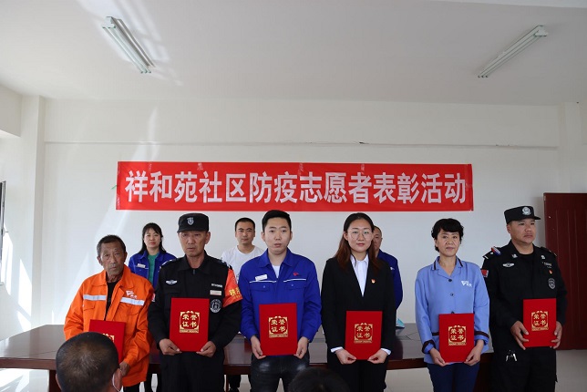 在這次表彰活動中,共授予23名志愿者和物業(yè)工作人員榮譽證書,祥和苑公租房項目經理隗公樸接過鮮紅的榮譽證書說:在這次疫情防控工作中,祥和苑社區(qū)黨組織和物業(yè)公司黨支部對項目處工作人員的關愛,是物業(yè)人不斷奮戰(zhàn)的精神動力,有黨旗的地方就有力量,作為一名老黨員,我會牢記使命,不負榮譽,不負職責,帶領祥和苑項目處全體工作人員,積極配合小黑河鎮(zhèn)社區(qū)做好各項工作,再接再厲,守護好小區(qū)業(yè)主的健康和平安。