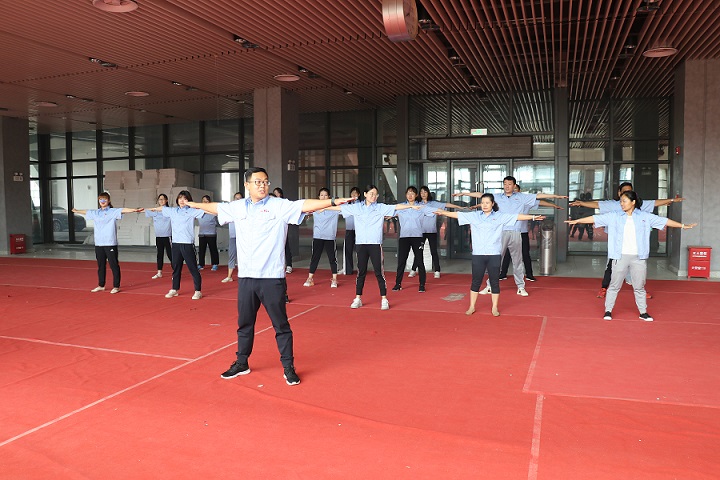 上午10:00第九套廣播體操的音樂準時在一樓大廳響起,領操員王龍帶領全體職工就位,首先整理隊形,接著帶領大家從伸展運動開始在積極昂揚的音樂中聯(lián)系廣播體操,全體員工積極參與,認真練習整個大廳充滿了活力、健康的氛圍,一天的高效工作由此開啟。