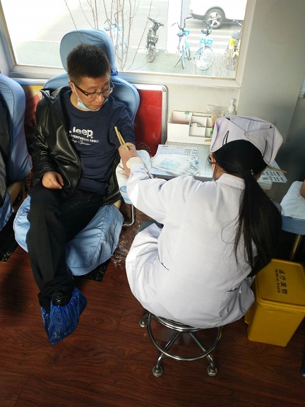 10時整,報名獻血的干部職工陸續(xù)進入采血車,大家首先登記體檢,排隊依次進行獻血。