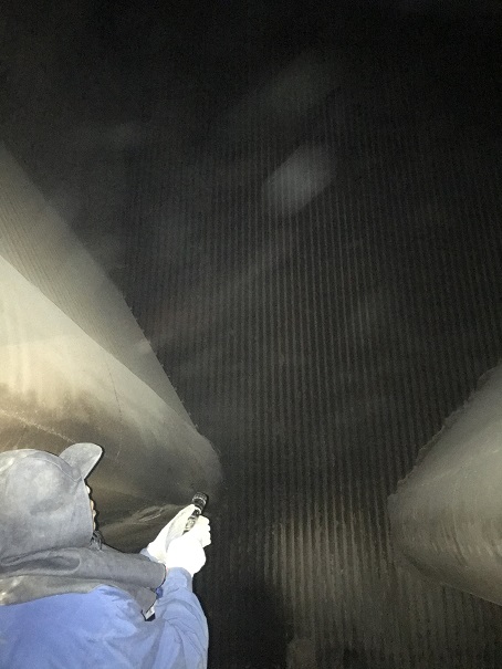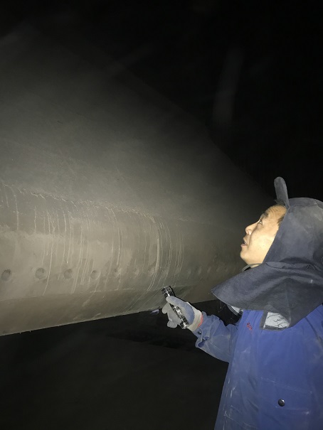 驗(yàn)收小組一行人通過(guò)鍋爐檢修口,進(jìn)入鍋爐內(nèi)部,檢查鍋爐內(nèi)水冷壁管噴涂施工情況。經(jīng)檢查,施工內(nèi)容符合招標(biāo)要求。