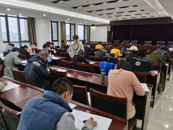 此次考試為閉卷考試,在公司八樓和十八樓會議室同時進行,共有106名客服崗位員工參加考試。
