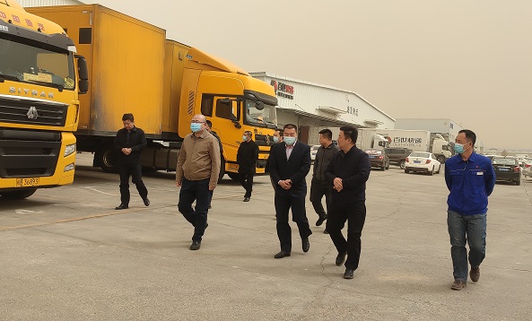 4月15日上午,烏蘭察布市萬益物流園區(qū)董事長王登勇、副總經(jīng)理?xiàng)钫滋?、招商運(yùn)營部長李玲娟一行赴城發(fā)物流公司惱包園區(qū)、億陽園區(qū)考察調(diào)研,城發(fā)物流公司黨支部書記楊福平、經(jīng)理丁雪峰、副經(jīng)理侯禎接待一行來訪人員。