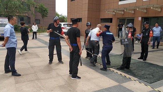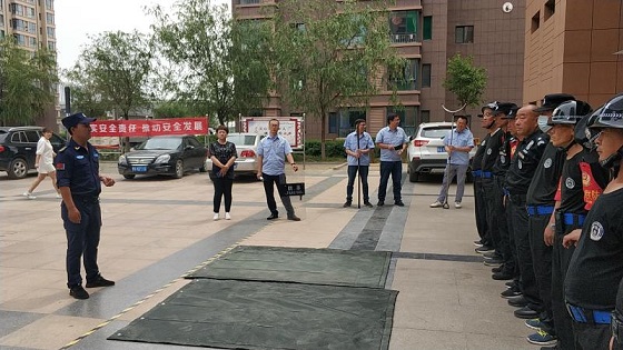 上午10:00演練正式開始,此次演練活動設(shè)置出現(xiàn)暴力襲擊的場景,進(jìn)行模擬報(bào)警、人員疏散、器材使用、制服暴徒、等待公安救援、事后報(bào)告流程等場景。演練過程中,參演人員嚴(yán)格按照預(yù)案流程分工,模擬在小區(qū)進(jìn)門登記測溫過程中,有一名人員拒不配合例行工作,并持刀傷害安保人員。安保人員迅速反應(yīng)、密切配合,立即報(bào)警并使用防暴器材控制嫌疑人,將居民緊急疏散至安全區(qū),外圍保安接警后及時(shí)趕赴現(xiàn)場進(jìn)行處置。演練完畢,安保公司相關(guān)負(fù)責(zé)人現(xiàn)場指導(dǎo)反恐器材的使用和發(fā)生此類突發(fā)事件的處理方法。