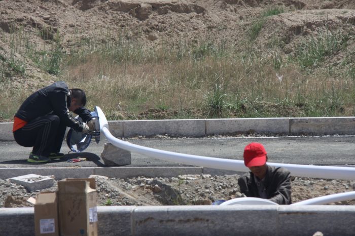 哈拉更西路路燈安裝現(xiàn)場(chǎng)。張亞利攝