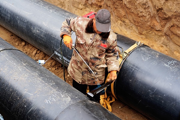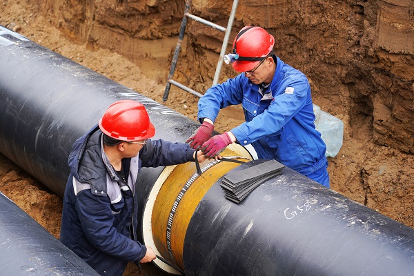 在施工現(xiàn)場(chǎng),筆者看到,5米深的管溝內(nèi),一段一段已焊接好的DN700管線向遠(yuǎn)方延伸著。在管溝內(nèi),工人們穿著厚厚的棉服,有的在為管道探傷、有的在為管道焊接口做保溫。