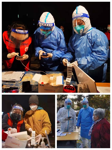 城發(fā)供熱辛家營分公司高瑞霞參加小黑河鎮(zhèn)新河營村核酸檢測志愿服務(wù)。田云崗參加水語青城2期 核酸檢測志愿服務(wù)。