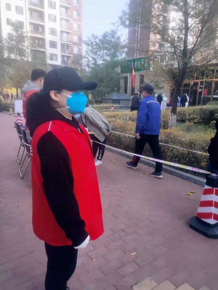 城發(fā)供熱公司客服部方敏參加金城小區(qū)核酸檢測志愿服務(wù)。