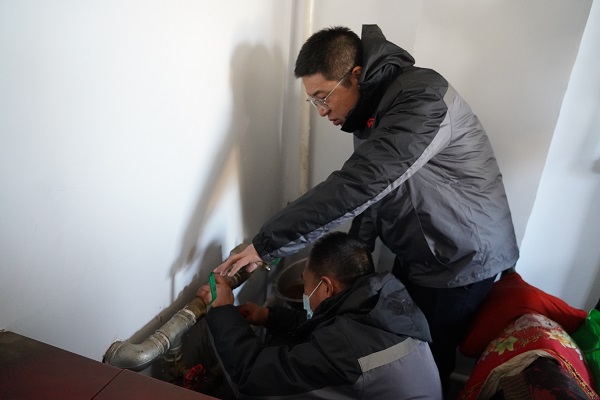 在回訪村中二站南線的路上,一位年近九十的大娘著急地朝我們走來。她說:"到我家看看吧,暖氣不熱。"工作人員跟隨老人來到其家中。大娘家為小南房,大約20平米左右,四面漏風,她的老伴身著棉衣盤腿坐在炕上。工作人員開始進行排氣、調(diào)節(jié)閥門、檢查過濾器,最后排查發(fā)現(xiàn)管道內(nèi)有異物堵塞,經(jīng)過排污,大娘家中的暖氣逐漸升溫。大爺激動地說:"你們給我修暖氣,忙的連口水也沒喝,娃娃們真好!我家院里有李子樹,明年李子熟了,你們過來吃。"客服處處長云躍看著大爺家簡陋的窗戶,略有所思.....稍后他說:"我們過幾天給大爺家安裝棉窗簾和門簾,讓溫暖到位、服務到位,室溫達標,讓老兩口溫暖過冬。"