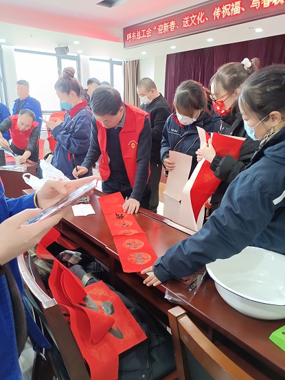 2022年春節(jié)將至,為營(yíng)造歡樂(lè)祥和的節(jié)日氛圍,弘揚(yáng)中華民族傳統(tǒng)文化,給集團(tuán)公司職工送上新春美好的祝福, 1月11日下午,呼和浩特市總工會(huì)、集團(tuán)公司工會(huì)組織70余名職工群眾在集團(tuán)18樓會(huì)議室開(kāi)展"迎新春、送文化、傳祝福、寫(xiě)春聯(lián)"活動(dòng)。