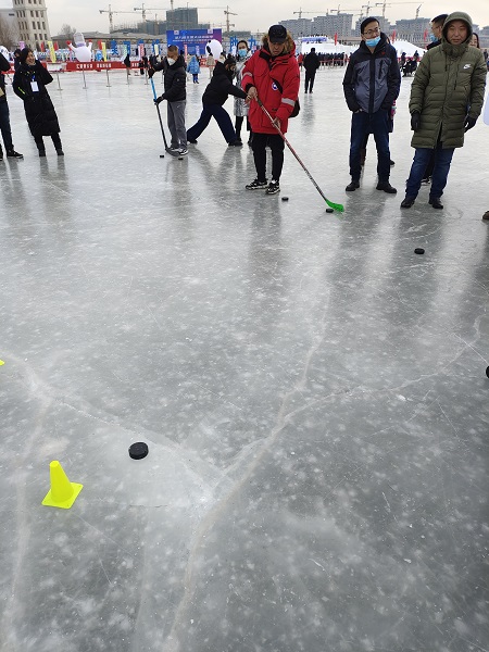 運(yùn)動(dòng)會(huì)設(shè)置了冰球射擊、雪圈投擲、冰車大作戰(zhàn)、冰壺撞擊、抽冰陀螺5個(gè)項(xiàng)目,形式簡(jiǎn)單、易于參與、趣味性強(qiáng)?,F(xiàn)場(chǎng),冰壺、冰球射門設(shè)施擺滿了整個(gè)場(chǎng)地,職工們躍躍欲試。運(yùn)動(dòng)會(huì)上,集團(tuán)公司運(yùn)動(dòng)員不懼嚴(yán)寒,團(tuán)結(jié)一致、相互鼓勵(lì),充分享受著運(yùn)動(dòng)帶來的樂趣,也在運(yùn)動(dòng)中加深了對(duì)冰雪運(yùn)動(dòng)的熱愛與了解。