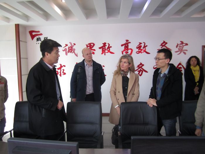 2014年11月14日,丹麥大使館商務參贊Susanne Nors(蘇珊 諾斯)、商務官員陳朝暉,丹麥出口信貸局財務官員馬丁 克魯斯(Morten Kruse),以及丹麥知名工業(yè)材料生產廠家,丹佛斯、波昂、施耐德、卡姆魯普代表所組成商務考察團,對城發(fā)公司建設的集中供熱工程等項目進行了為時一天的商務考察。