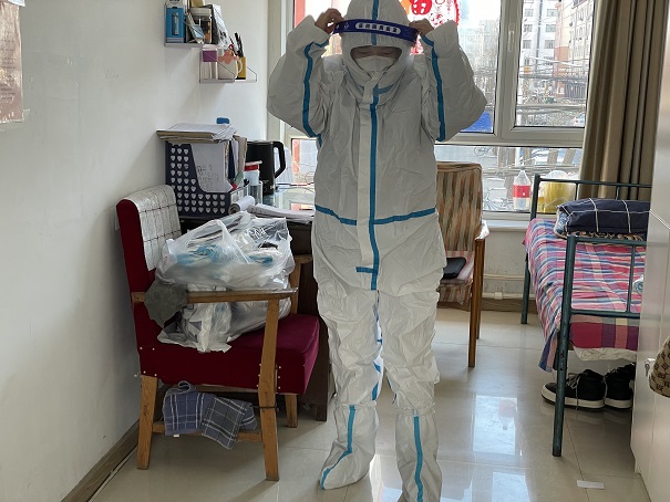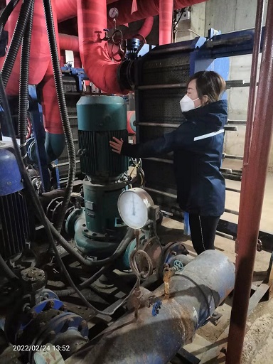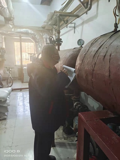 新華東分公司巨華朗域熱力站是受小區(qū)封控管理影響的第一個熱力站,公司臨時組建的運營小組的李文霞從17日小區(qū)封控以來,一直在熱力站值守。2月24日,筆者來到長樂宮供暖所,看到所長李瑋潔正在和李文霞視頻通話:"每天的消殺要做好,你自己和你愛人的防護工作也要做好,站里運行一切正常吧?你還需要什么物資嗎?"李瑋潔關切的詢問、耐心的叮囑著。李文霞說:"站內運行一切正常,我每天都按照要求對站內進行消殺,我和我愛人也很注意防護工作,分公司委托疫情防控人員給我們送進來的物資還有很多,請領導放心,我會一直堅守在工作崗位上。" 筆者又看到一旁有位工作人員在穿防護服,李瑋潔告訴筆者:"武警小區(qū)熱力站也在封控區(qū)域,我們和疫情防控相關人員溝通后,每天由站員穿著防護服,戴著口罩、醫(yī)用手套、防護面罩進行4次巡檢,現(xiàn)在正在穿隔離服準備去巡檢的是索媛媛。"二十多分鐘后,索媛媛回來,筆者看到她的隔離面罩上全都是霧氣,只見她熟練地將隔離服脫掉扔到指定的垃圾箱內,隨即開始做常規(guī)的消殺。她告訴筆者:"以前看到防疫一線的醫(yī)務人員穿著防護服工作只是覺得他們很辛苦,但是自從我也需要穿防護服巡站時,才有了親身的體驗,不僅防護服穿脫時不方便,而且著裝后行動也變得不靈敏,我每次只穿半個小時左右就覺得很不舒服了,而醫(yī)護人員一穿就一整天,還不能上廁所,因此,我這點辛苦算不了什么。"