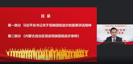 本次培訓(xùn)以良法善治,凝心聚力,鑄牢中華民族共同體意識為主題,中國政法大學(xué)劉東剛博士圍繞習(xí)近平總書記關(guān)于民族團(tuán)結(jié)進(jìn)步的重要講話指示精神、《中國共產(chǎn)黨統(tǒng)一戰(zhàn)線工作條例》《內(nèi)蒙古自治區(qū)促進(jìn)民族團(tuán)結(jié)進(jìn)步條例》《中華人民共和國國家通用語言文字法》《內(nèi)蒙古自治區(qū)實(shí)施〈中華人民共和國國家通用語言文字法〉辦法》《民族區(qū)域自治法》《城市民族工作條例》的重點(diǎn)亮點(diǎn)內(nèi)容進(jìn)行了解讀。