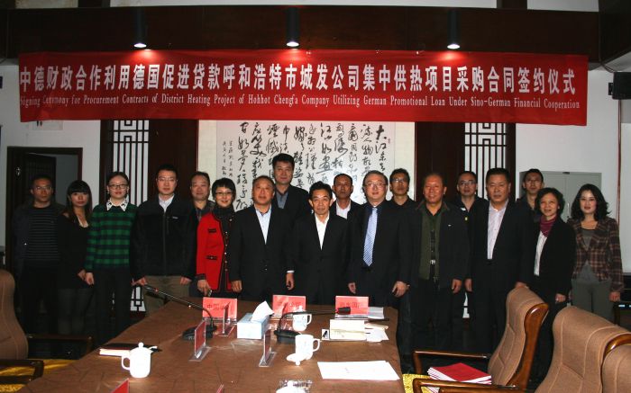 2014年11月26日,呼和浩特市城發(fā)公司舉行了中德財(cái)政合作利用德國(guó)促進(jìn)貸款建設(shè)呼和浩特市集中供熱項(xiàng)目采購(gòu)合同簽約儀式,標(biāo)志著本項(xiàng)目3500萬歐元貸款資金正式啟用。