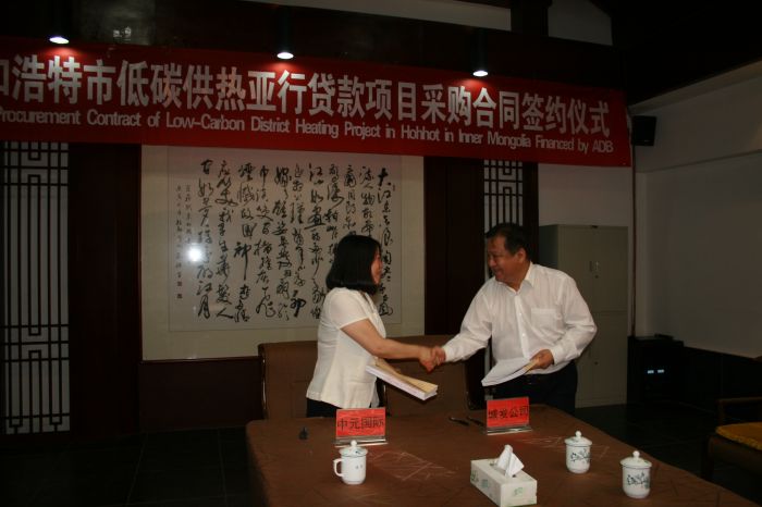 2016年6月30日上午11:30,內(nèi)蒙古呼和浩特市低碳供熱亞行貸款項(xiàng)目——城發(fā)公司辛家營(yíng)、金橋、毫沁營(yíng)區(qū)域集中供熱工程第6包采購(gòu)合同簽約儀式在城發(fā)大廈29樓會(huì)議室舉行。呼和浩特市城發(fā)投資經(jīng)營(yíng)有限責(zé)任公司與中標(biāo)單位中國(guó)中元國(guó)際工程有限公司共同在合同上簽字,標(biāo)志著亞行項(xiàng)目中的引熱入呼長(zhǎng)輸管線項(xiàng)目即將開(kāi)工建設(shè)。