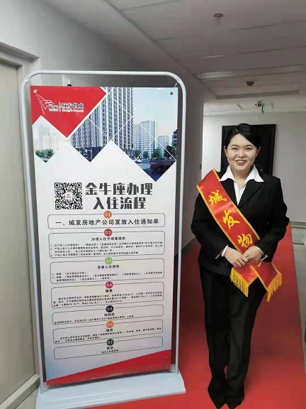 在鑰匙的交接儀式上,李錚將城發(fā)金牛座房屋的鑰匙正式交給首批入住的代表胡女士,并真誠(chéng)的祝愿每一位業(yè)主榮耀歸家,幸福起航,在和諧的氛圍中完成了交房?jī)x式。