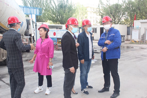 儀式結(jié)束后,一行人來到位于金牛座底商的售樓部參觀檢查裝修情況。目前,該項目3-10層二次結(jié)構(gòu)已施工完成,4、5層墻體抹灰全部完成,樣板間裝修施工正在進(jìn)行。