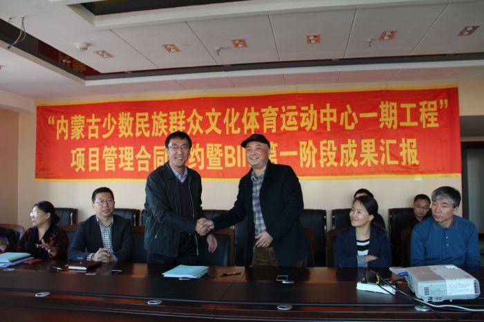 2015年11月26日上午,城發(fā)房地產(chǎn)公司與重慶聯(lián)盛建設(shè)項目管理有限公司,就內(nèi)蒙古少數(shù)民族群眾文化體育運動中心項目管理合同進(jìn)行了簽約。會議中,重慶聯(lián)盛項目管理公司對本項目BIM第一階段成果進(jìn)行了展示。BIM,即建筑信息模型(Building Information Modeling),是以建筑工程項目的各項相關(guān)信息數(shù)據(jù)作為模型的基礎(chǔ),進(jìn)行建筑模型的建立,通過數(shù)字信息,仿真模擬建筑物所具有的真實信息。該項目的BIM展示,從結(jié)構(gòu)、外形等方面生動形象地展現(xiàn)了工程情況,優(yōu)點是,可在BIM技術(shù)應(yīng)用過程中及時發(fā)現(xiàn)問題,糾正施工圖設(shè)計,減少實際工程中可能的誤差。