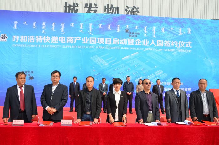 4月26日上午,呼和浩特快遞電商產(chǎn)業(yè)園項(xiàng)目啟動(dòng)暨企業(yè)入園簽約儀式在城發(fā)惱包物流園區(qū)舉行,順豐、中通、宅急送、百世、申通、中通、圓通、韻達(dá)等16家快遞企業(yè)與城發(fā)公司簽約,計(jì)劃分二期入駐惱包物流園區(qū)。