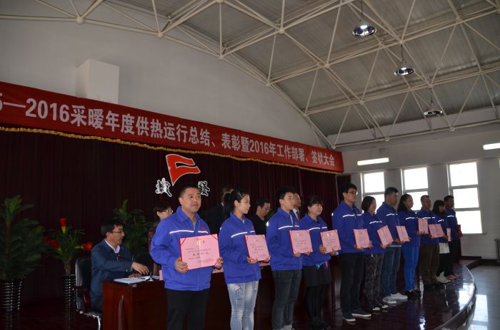 會(huì)議由常務(wù)副總經(jīng)理史繼文主持,會(huì)上,吳利勤副總經(jīng)理作了20152016采暖年度供熱運(yùn)行總結(jié)報(bào)告;黨委副書記張永宣讀了表彰決定,表彰了2015年度先進(jìn)集體、先進(jìn)工作者和城發(fā)最美員工;呂德育總經(jīng)理部署了公司2016年工作,并與相關(guān)部門責(zé)任人簽訂了2016年工作目標(biāo)責(zé)任狀。