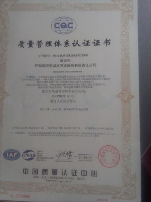為進一步提升企業(yè)品質服務水平,城發(fā)物業(yè)公司于2016年下半年組織開展了質量、環(huán)境、職業(yè)健康安全管理三標體系認證。9月初,中國檢驗認證集團內(nèi)蒙古有限公司安排項目評審員對城發(fā)物業(yè)公司相關認證工作進行了全面咨詢,于9月27-30日完成了城發(fā)大廈、金城小區(qū)、橋靠熱源廠三個物業(yè)項目認證審核工作,于10月中旬前完成了不符合項整改工作。