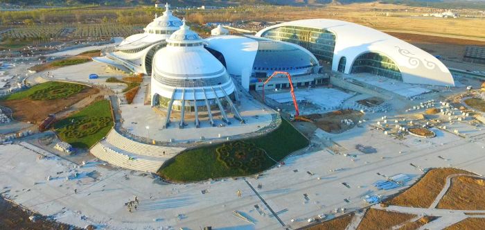 截止到2017年5月5日,內(nèi)蒙古少數(shù)民族群眾文化體育運(yùn)動(dòng)中心完成投資7.68億元,室外工程完成80%,外景初見效果,施工現(xiàn)場(chǎng)綠意盎然,充滿生機(jī)。