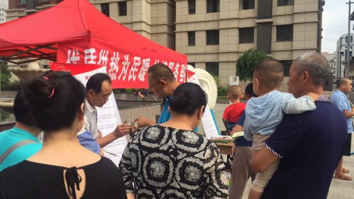 7月16日上午,三合村分公司運營四所工作人員在親親尚城小區(qū),深入開展供熱服務(wù)宣傳活動。