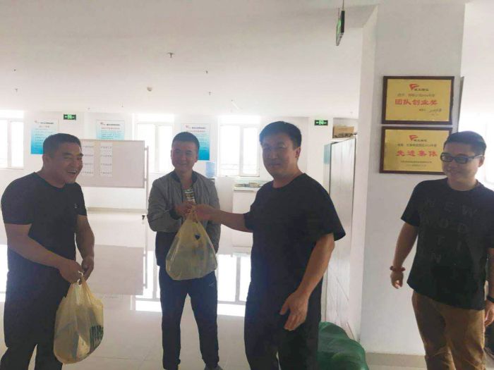 2018年8月17日,城發(fā)物流公司工會(huì)組織開(kāi)展了暑期慰問(wèn)、清涼一夏的送清涼慰問(wèn)園區(qū)一線員工的活動(dòng)。黨支部書(shū)記楊福平、經(jīng)理丁雪峰等一行為物流公司一線員工送去了慰問(wèn)品。