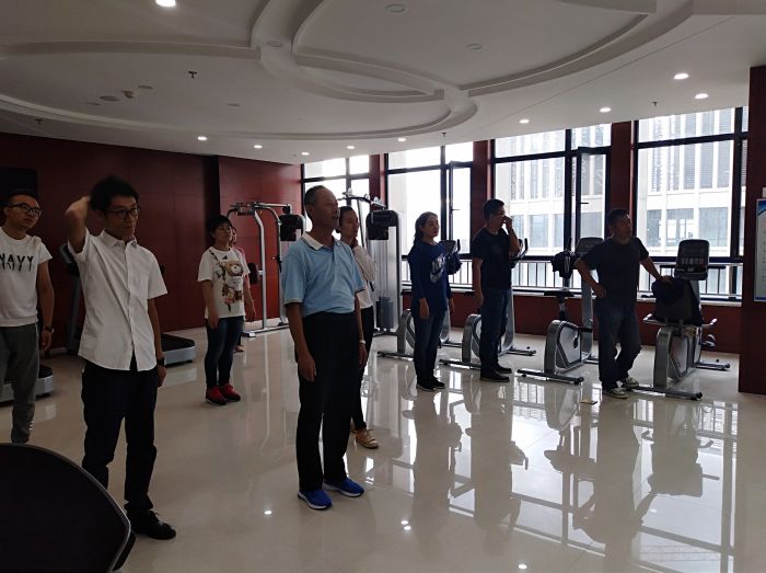 9月6日上午8時30分,激情洋溢的樂曲準時在城發(fā)集團19樓健身房響起,城發(fā)公司的20余名干部職工隨著鏗鏘有力的節(jié)拍,舒展身姿,精神抖擻地跳起了健身操。這是城發(fā)公司工會為備戰(zhàn)市工間操比賽作的一次賽前集訓(xùn)。