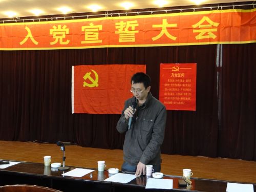 會場肅穆莊嚴(yán),主席臺正中懸掛著中國共產(chǎn)黨黨旗。在雄壯的《國際歌》聲中,儀式拉開了序幕,四名預(yù)備黨員在黨小組長的帶領(lǐng)下,緊握右拳,面對黨旗莊嚴(yán)的進(jìn)行了宣誓,表達(dá)了為共產(chǎn)主義事業(yè)奮斗終生的決心。儀式結(jié)束后,預(yù)備黨員代表張學(xué)文進(jìn)行了發(fā)言,表達(dá)了能成為中國共產(chǎn)黨一員的激動和光榮,同時也深切感受到了責(zé)任感和使命感,今后要時刻以黨員標(biāo)準(zhǔn)嚴(yán)格要求,努力工作,堅定信念,為黨的事業(yè)努力奮斗,再立新功。
