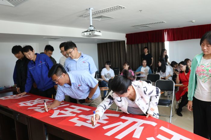 全體員工在2019年安全生產月宣傳橫幅上鄭重地簽上了自己的名字,以實際行動表明全員參與,提高安全意識,遵章守紀從我做起的信心與決心。