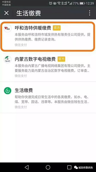 為確保廣大熱用戶安全交費,請務(wù)必按照下述正確操作流程進行交費,不要通過其他公眾號或個人生成的二維碼等平臺進入交費界面。按照正規(guī)通道進入微信平臺交費界面(無歷年欠費)操作流程如下: