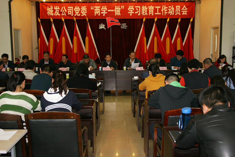 按照市委的統(tǒng)一部署和要求,城發(fā)公司黨委于5月5日下午召開了“兩學(xué)一做”學(xué)習(xí)教育動員會。公司領(lǐng)導(dǎo)班子全體成員,全體黨支部書記、支委部委員、黨小組長、黨群處長及所有黨務(wù)工作人員參加了會議。黨委副書記張永同志主持會議并宣讀了《城發(fā)公司黨委關(guān)于在全體黨員中開展“兩學(xué)一做”學(xué)習(xí)教育的工作方案》(以下簡稱“活動方案”)。