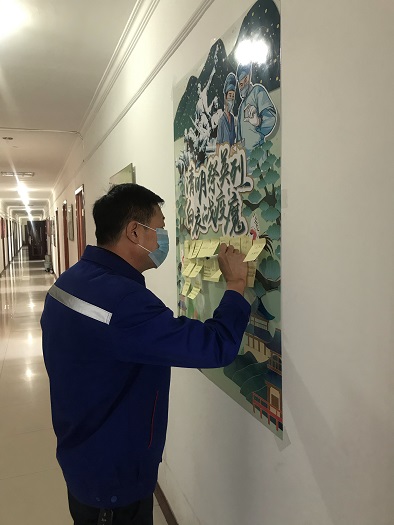 黨支部還制作了祭奠海報(bào),張貼在樓道醒目位置,黨員群眾可以隨時(shí)進(jìn)行祭掃活動(dòng),并留下祭掃寄語,祭奠在中國革命、建設(shè)、改革歷史進(jìn)程中英勇犧牲烈士的同時(shí),致敬在抗擊疫情一線犧牲的醫(yī)護(hù)人員、公安干警等"逆行英雄"。