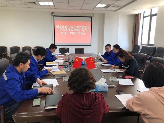 4月23日,房地產(chǎn)公司黨支部在城發(fā)集團11樓會議室組織召開黨風(fēng)廉政建設(shè)、綜合治理、保密工作會議,公司全體黨員干部10人參加了會議。