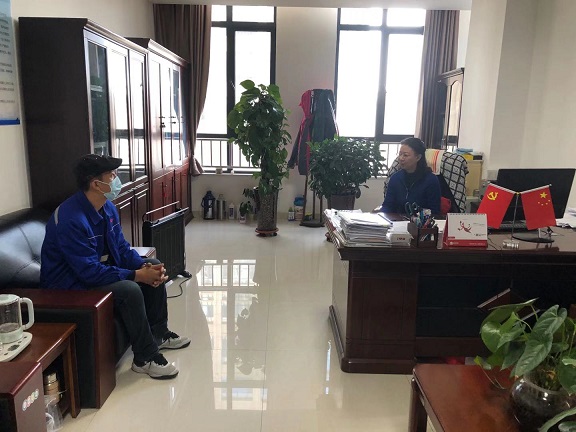 此次活動主要訪談接待公司困難職工,了解他們在工作、生活及家庭方面存在的困難,征求意見建議,力所能及的幫助解決實際問題。黨支部書記郭依群還接待了公司新入職的職工,和他們促膝而談,詳細介紹了公司的發(fā)展情況,鼓勵他們要發(fā)揚青年職工敢于爭先、吃苦耐勞的精神。同時郭依群同志還同積極入黨的同志進行了談心談話,了解其思想動態(tài)和工作情況,并要求他們要加強學(xué)習(xí)、提高思想認識和政治覺悟,時刻以共產(chǎn)黨員的標(biāo)準(zhǔn)要求自己,爭取早日入黨。