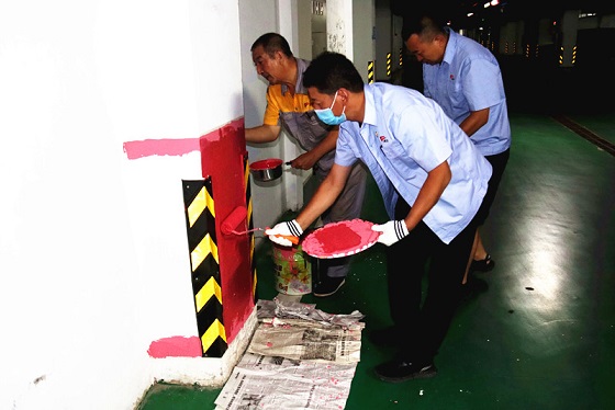 此次活動重點是粉刷小區(qū)地庫轉(zhuǎn)向柱、懸掛車輛導(dǎo)向牌及插放綠化帶標(biāo)識牌?;顒蝇F(xiàn)場,大家在公司黨支部書記娜仁、經(jīng)理史濤的帶領(lǐng)下,分頭行動起來。有的負(fù)責(zé)粉刷墻面、清洗地面;有的負(fù)責(zé)懸掛引導(dǎo)車輛安全出入導(dǎo)向標(biāo)牌;有的負(fù)責(zé)在草坪內(nèi)選位、挖坑、插放“愛護花草”標(biāo)識牌……經(jīng)過大家的共同努力和辛勤勞作,地庫面貌煥然一新,小區(qū)草坪也裝點的更加溫馨靚麗了。