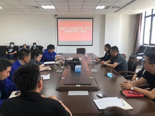 5月房地產公司黨支部多次召開黨員干部會議,集中學習傳達領會貫徹民族政策宣傳工作精神,擴大學習次數(shù)和范圍。通過網絡、微信、學習強國等平臺集中開展民族政策宣傳系列活動,并制作宣傳條幅和展板張貼在公司11樓大廳,增強民族團結氛圍。