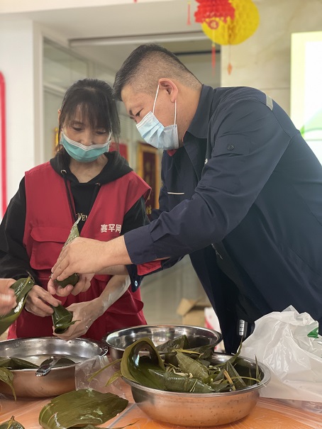 包粽子活動(dòng)中,大家捋粽葉、填糯米、壓實(shí)、封口、打捆……熱情高漲,精工細(xì)作、巧手翻飛、各顯其能,既分工又合作,一邊交流著包粽子的技巧,一邊嘮上幾句家常,沉浸在歡樂和諧的氣氛中。三角形、牛角形……隨著各環(huán)節(jié)的制作完成,一個(gè)個(gè)粽子紛紛成型,各式各樣的漂亮粽子出鍋了,空氣中散發(fā)著清爽甘醇的氣息,既讓大家感受到傳統(tǒng)節(jié)日中蘊(yùn)涵的意義,增強(qiáng)了愛國(guó)主義情懷,又加深了社區(qū)居民、企業(yè)員工之間的友誼感情,營(yíng)造了“一家親”的濃厚氛圍。