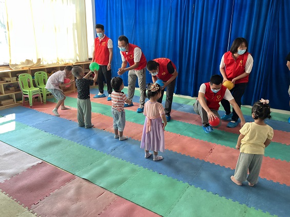 活動現(xiàn)場,愛心小分隊一行將精心準備的慰問品送到孩子們的手中,與他們親切交談,參觀孩子們學習、生活的環(huán)境,詳細了解孩子們的學習、生活狀況。隨后,愛心小分隊與孩子們進行了搶板凳、接皮球等互動游戲,在歡聲笑語中,志愿者與孩子們結下了深厚的友誼。